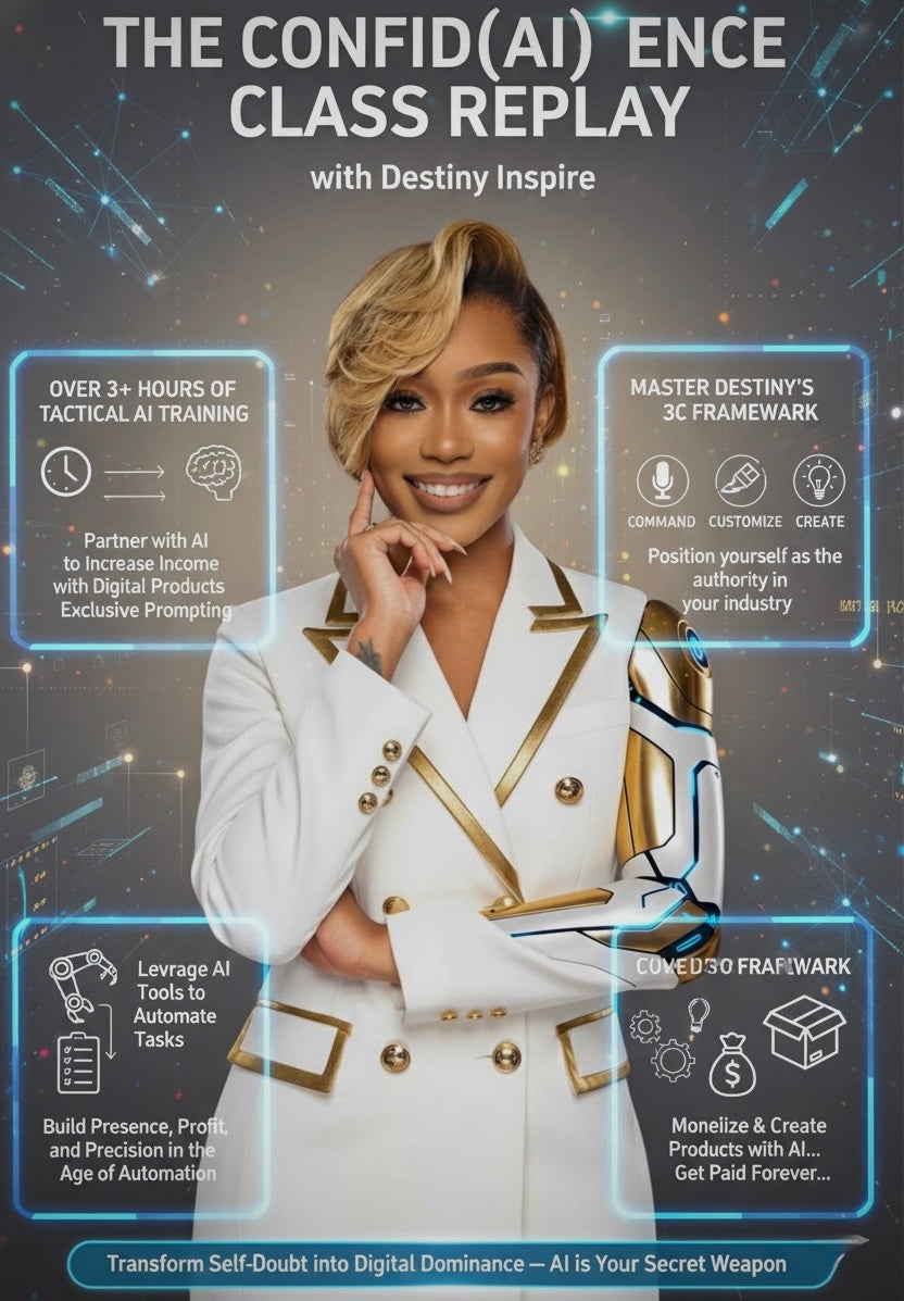 In this powerful 3-hour, 48-minute experience, Destiny Inspire reveals how to combine human brilliance with the power of AI to increase your confidence, competence, and capacity as a leader, entrepreneur, or high performer.
